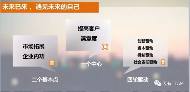 二十年時光如梭,天有站在新的起點,處在新的路口,面臨新的選擇。雖然傳統(tǒng)制造業(yè)處于一片紅海,中國的實體經(jīng)濟如曹德旺抱怨的嚴峻經(jīng)營環(huán)境,外貿(mào)出口受到trump貿(mào)易保護主義的挑戰(zhàn),但我們要看到全球家居鞋近千億的市場份額,看到全球分工的比較優(yōu)勢,只要我們堅持在專注傳統(tǒng)行業(yè)精耕細作,保持開放創(chuàng)新思維,就一定能夠成為叢林中的能手。我們要堅持一個中心,兩個基本點,四輪驅(qū)動。堅持把提高客戶的滿意度當做是公司的中心,抓市場拓展和練企業(yè)內(nèi)功兩個基本點。利用四輪驅(qū)動----創(chuàng)新驅(qū)動,機制驅(qū)動,資本驅(qū)動,社會責任驅(qū)動,引領(lǐng)企業(yè)可持續(xù)發(fā)展。