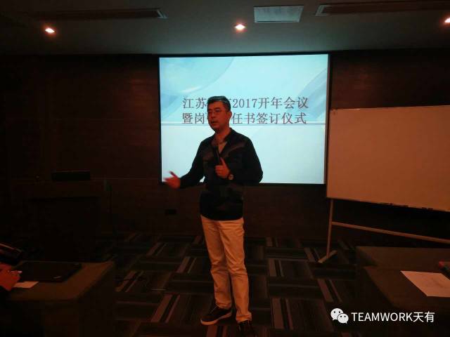 吳總用簡潔明了的PPT展現(xiàn)了我們2017年的發(fā)展方向---蛻變,并概括了我們TEAMWORK 的精神、要求以及遠景。